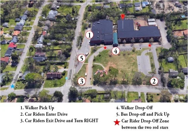 All traffic must turn right out of the Dan Mills driveway onto Kennedy during drop-off and pick-up.
